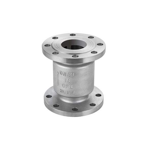 法兰式止回阀是指依靠介质本身流动而自动开、闭阀瓣,用来防止介质倒流的阀门,又称逆止阀、单向阀、逆流阀、和背压阀。止回阀属于一种自动阀门,其主要作用是防止介质倒流、防止泵及驱动电动机反转,以及容器介质的泄放。